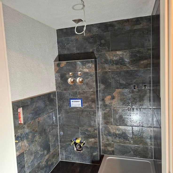 Saubere Naturstein- und Fliesenverlegung mit handwerklicher Präzision.